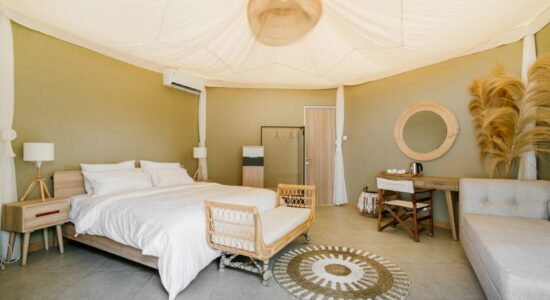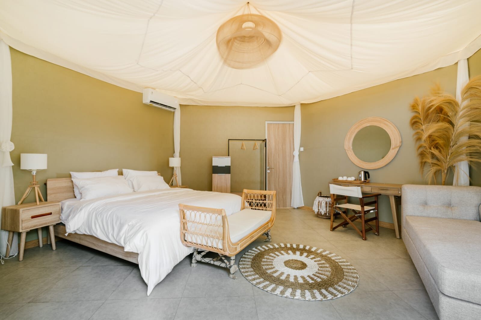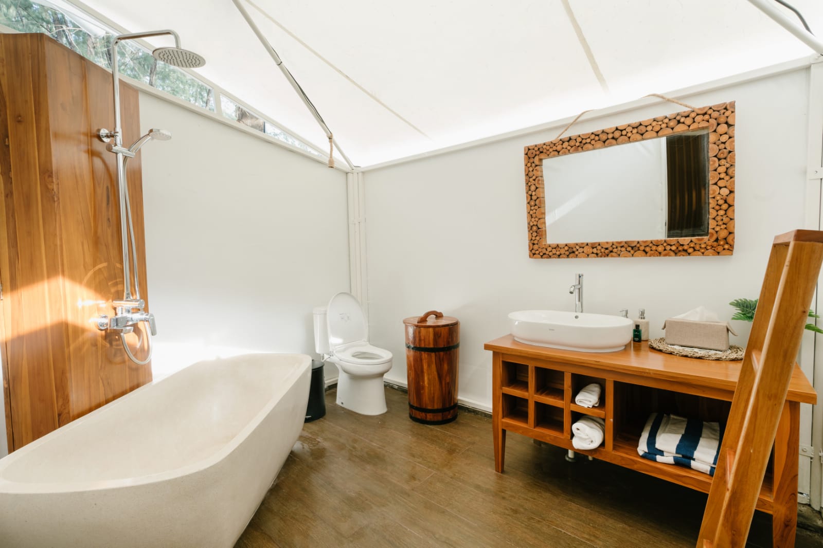 Room only Glamping Rate, include : Accomodation (AC, King Bed 180x 200 cm, Shower & Bathtub, soap, shampoo, tooth paste, sandals, towels, hand sanitizer, hair dryer, wifi, coffee & tea maker), Welcome drink, Breakfast.