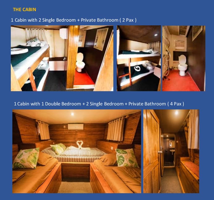 Price Excluded : Airfare, Soft Drink, Alcohol Drinks, Insurance, Personal expenses & tipping UPGRADE BOAT : CABIN AC IDR 500.000/PERSON