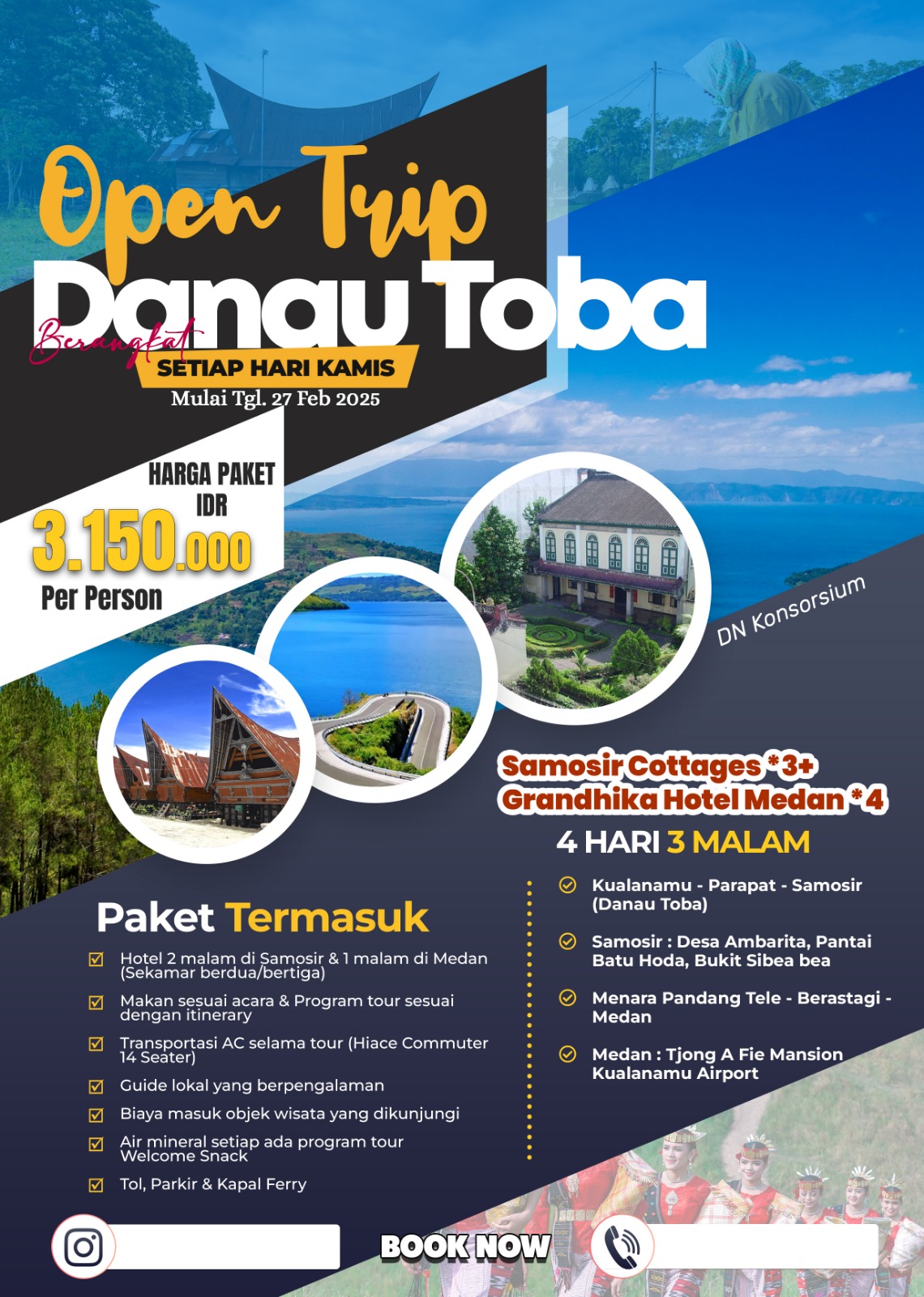 Open trip ini untuk memudahkan kalian untuk mengujungi DANAU TOBA dan sekitar nya.